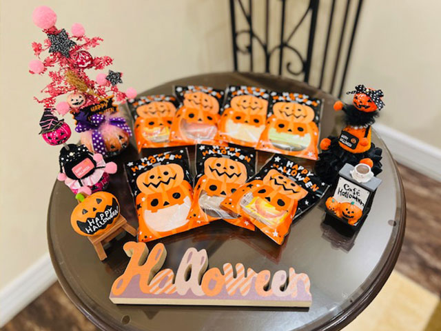 ロイヤルの館内はいま、ハロウィンの装飾がたくさんでとっても可愛いです(≧▽≦) ハロウィン当日は入居者の皆さまにお菓子セットのプレゼントをご用意しております♬